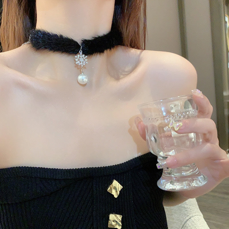 Autumn And Winter Furry Christmas Snowflake Pendant Necklace